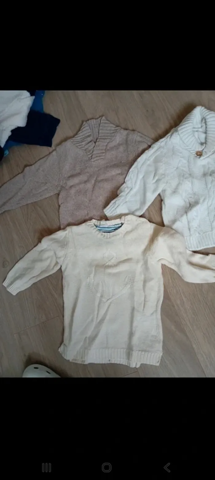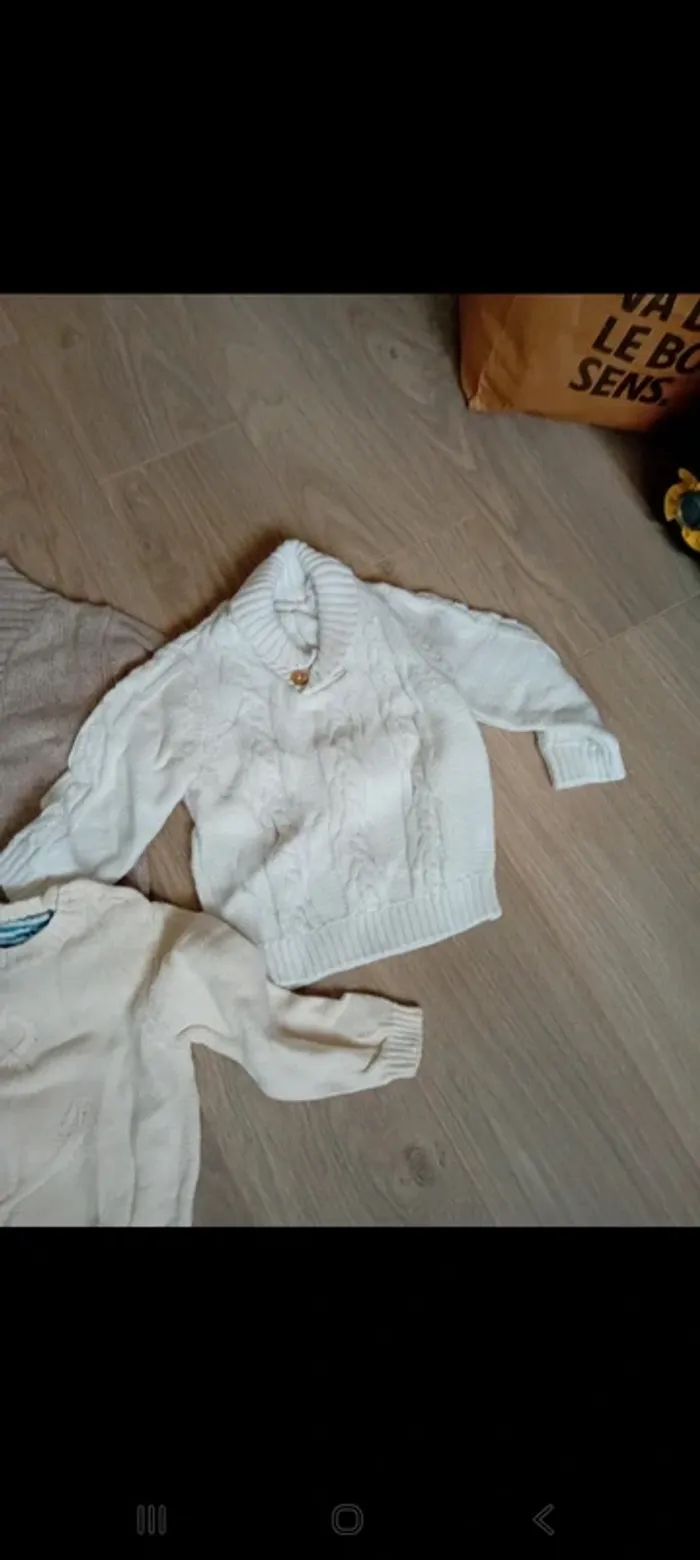 #taille24moiscindouille0115 #pullchaudgarcon #pulllaine #graindeblé #Orchestra #hetm Le blanc à droit est taille 23 mois et le hm est 12 18 mois mais 86cm
