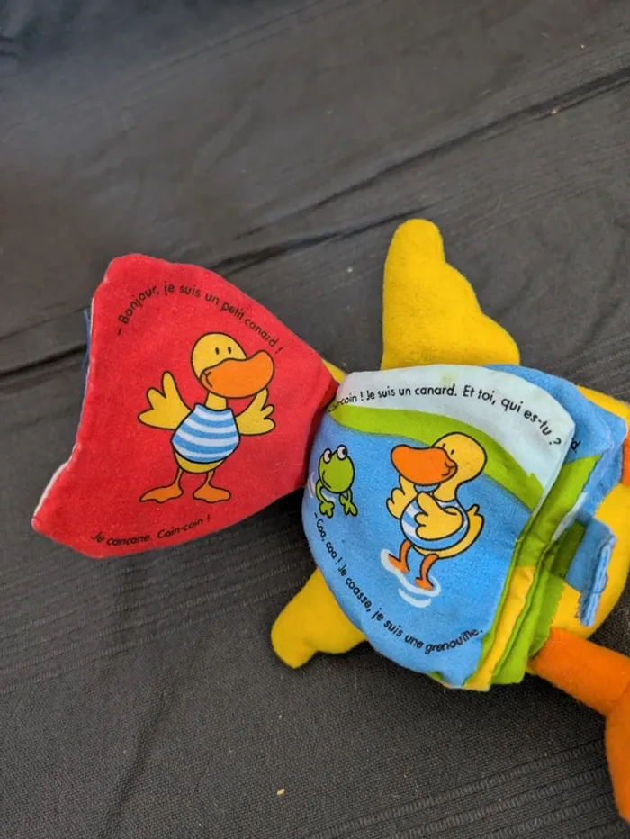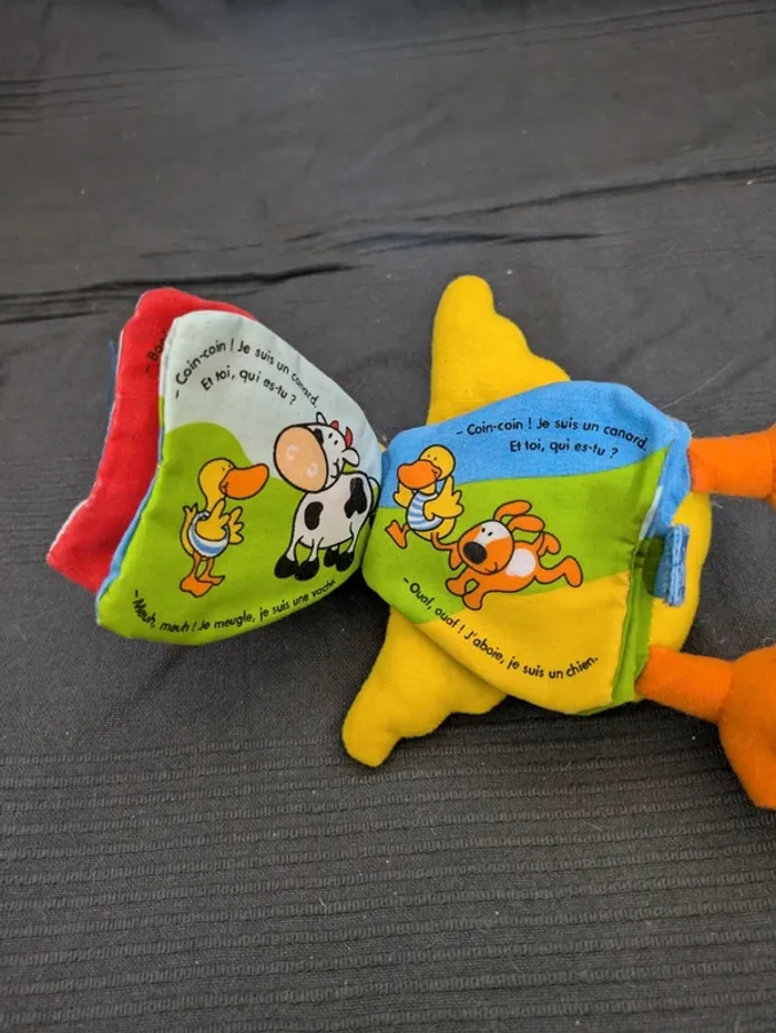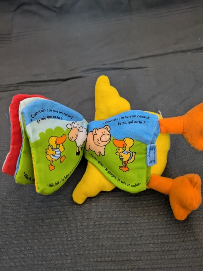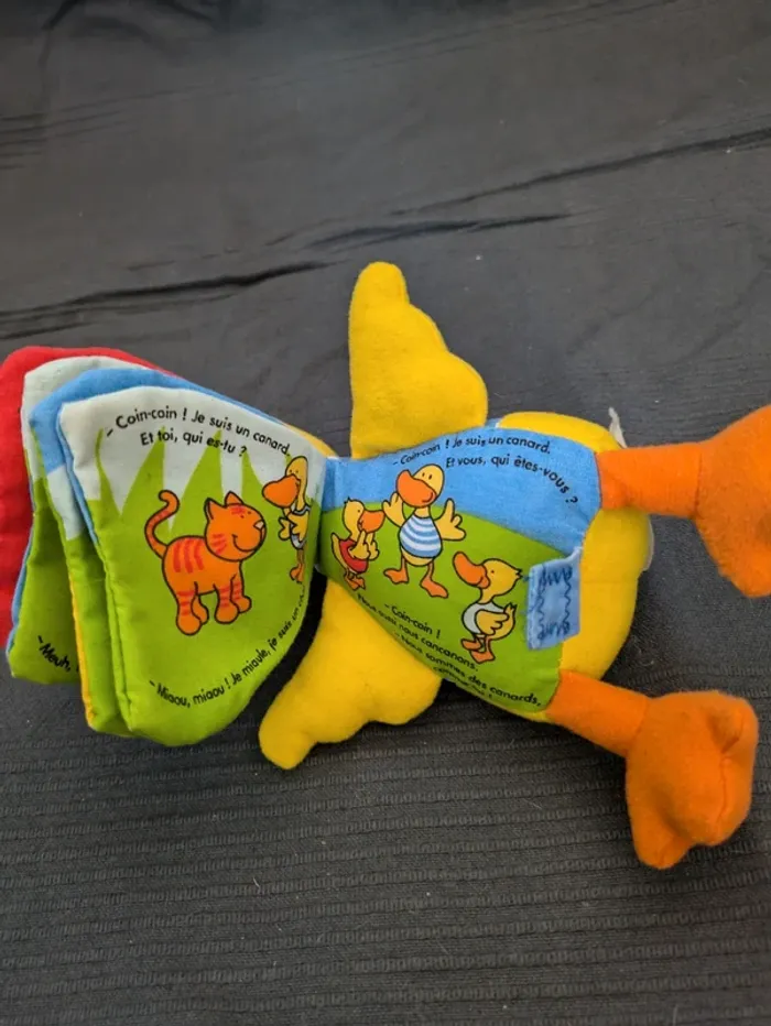 Peluche/Livre en forme de canard : Les p'tits bavards Coin Coin Bouton dans l'aile ne fonctionne plus