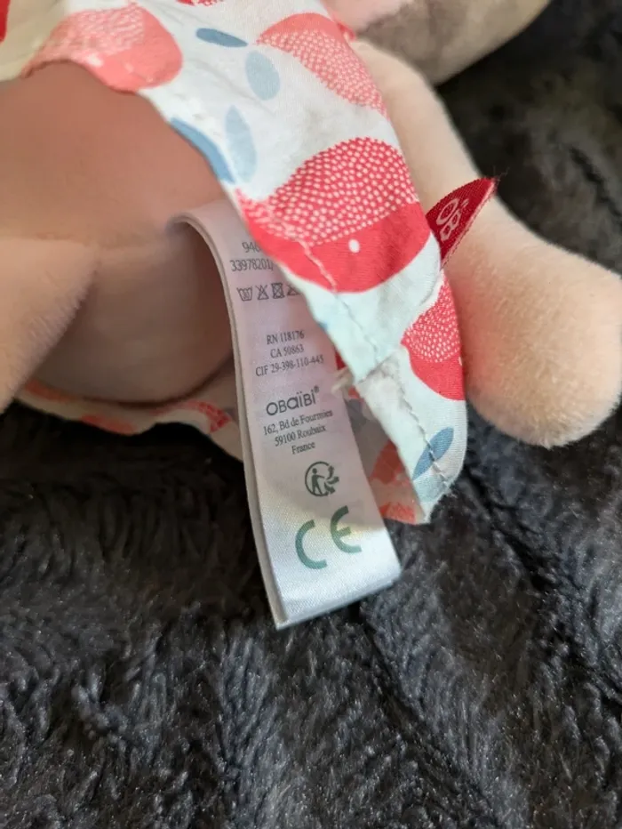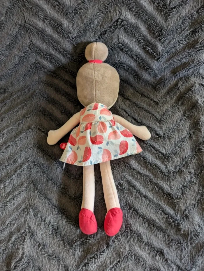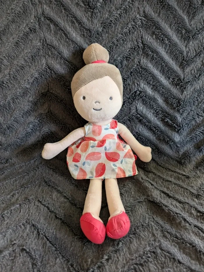 Poupée en tissu (Doudou/Peluche) chignon robe motif rouge De la marque Obaïbi