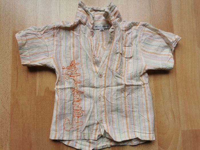 CHEMISE GARCON 18 MOIS Chemise MINI GANG rayé orange/gris manches courtes TRES BON ETAT !!!