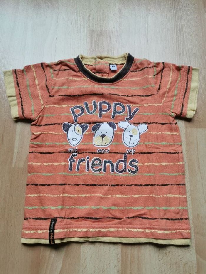 T-SHIRT GARCON 18 MOIS T-shirt orange rayé motif chien TRES BON ETAT !!!