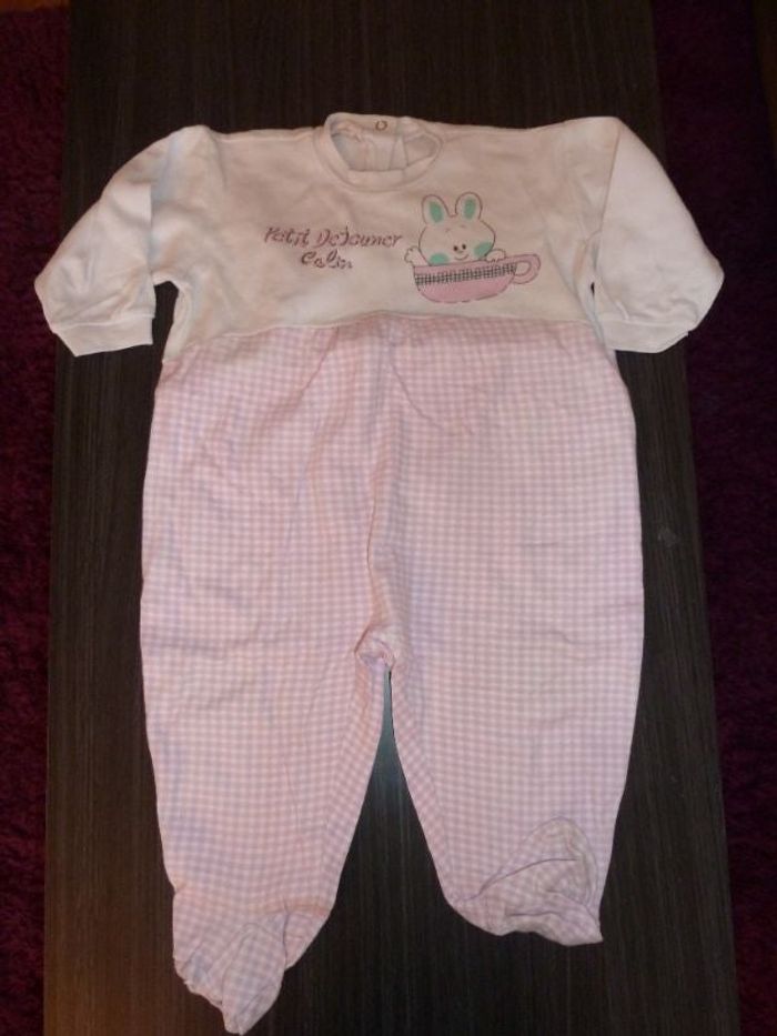 PYJAMA FILLE 23 MOIS/2 ANS Pyjama blanc/rose vichy, motif lapin, ouverture dans le dos BON ETAT !!!