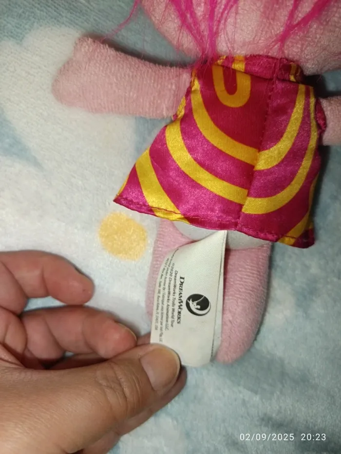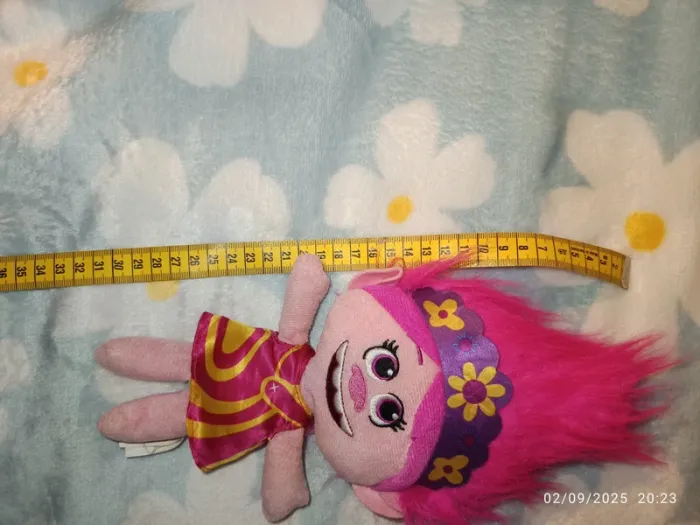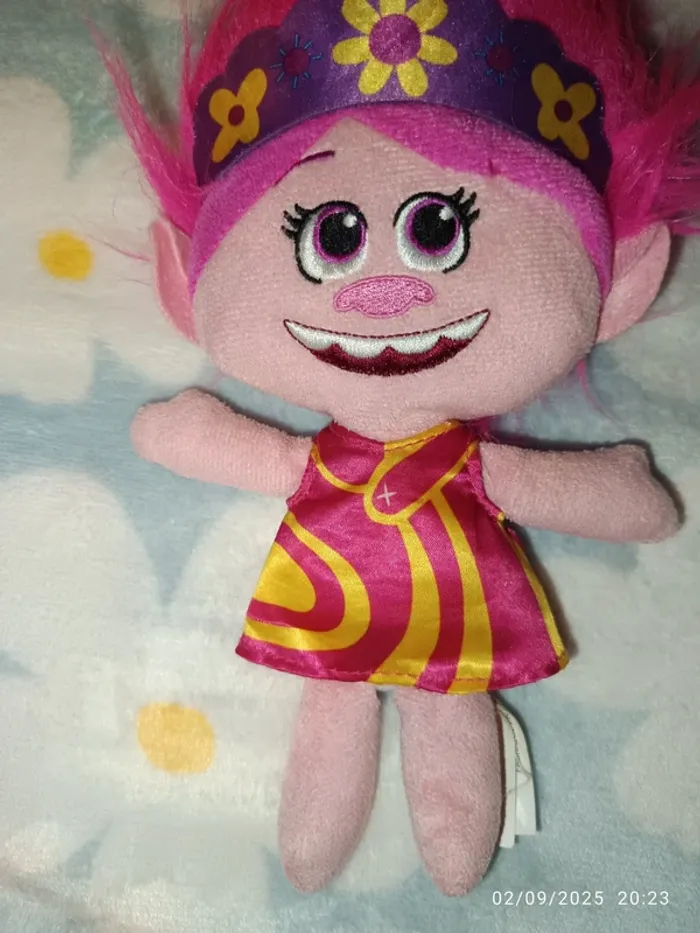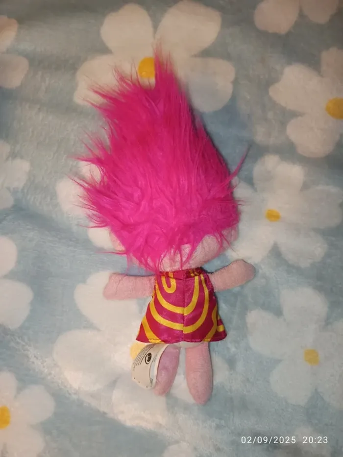 Peluche Poppy les trolls. Environ 30 cm. Initialement, elle chante mais impossible de changer la pile. Bon état général