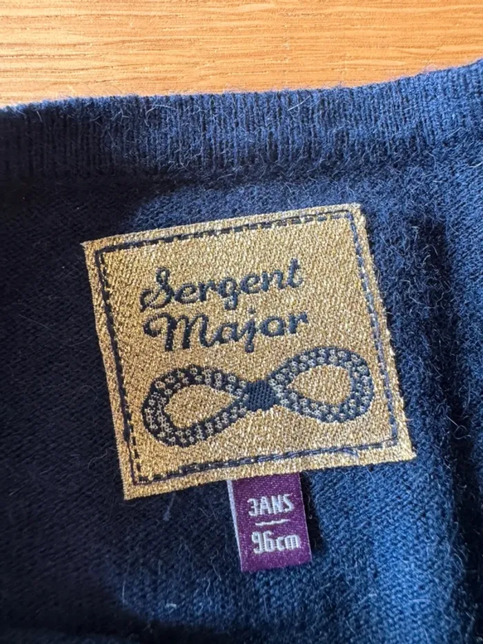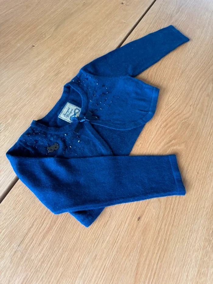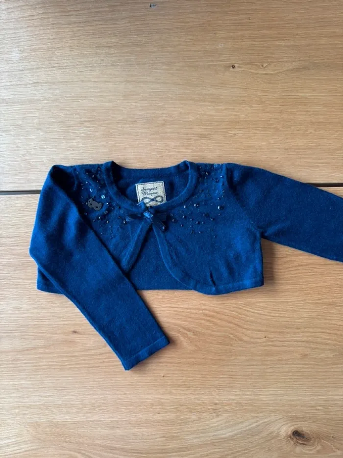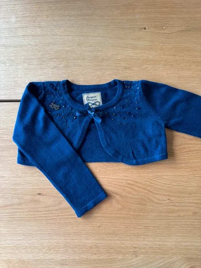 Boléro / gilet court bleu marine avec strass et petit noeud de marque Sergent Major. Taille indiquée 3 Ans mais peut convenir facilement pour du 4 Ans. Il y a 8% d’angora ce qui le rend tout doux et confortable. Super pratique au dessus d’une robe ou d’une chemise il est bien bleu marine (pas blanchi) et en excellent état. 💙 🛍️ N'hésitez pas à jeter un œil à mon dressing et composer votre lot de nombreux autres articles vous y attendent en fille 3/4 Ans. #fille3ans_lapetitemarie #fille4ans_lapetitemarie #lapetitemarie