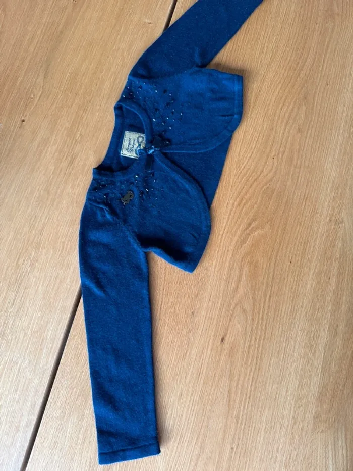 Boléro/gilet court bleu marine et strass - Taille 3/4 Ans - photo numéro 1