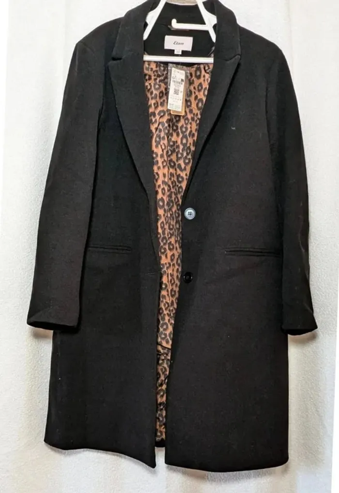 Manteau long coupe droite taille 40 noir intérieur motif léopard