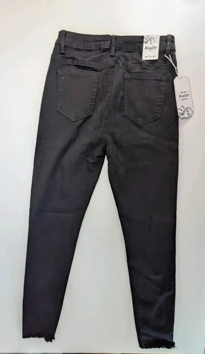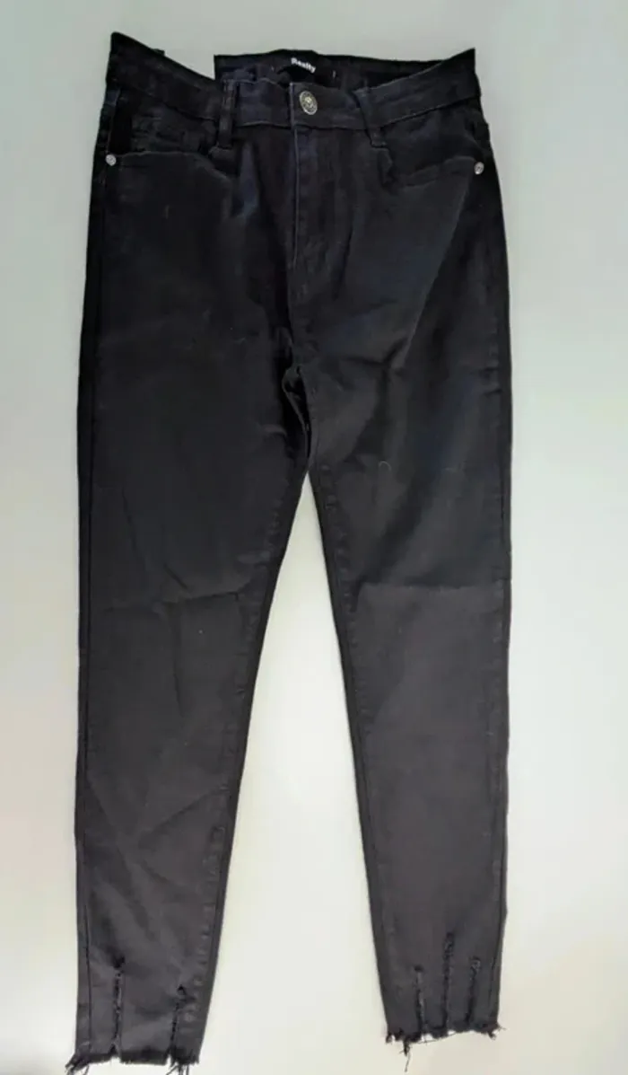 Jean noir skinny Ourlet effiloché/ griffé Taille Longueur jambe : 94 cm Largeur taille : 34cm Taille étiquette XL/42 (mais taille très petit ) Neuf avec étiquette. #jeannoirskinny #realtyjena #jeanfemme