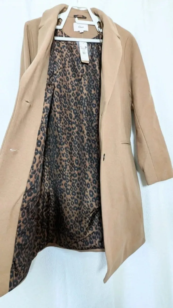 Manteau long coupe droite taille 40 Dune intérieur léopard - photo numéro 1