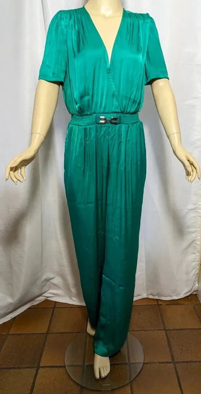 Combinaison droite fluide satin vert Taille 40 Morgan