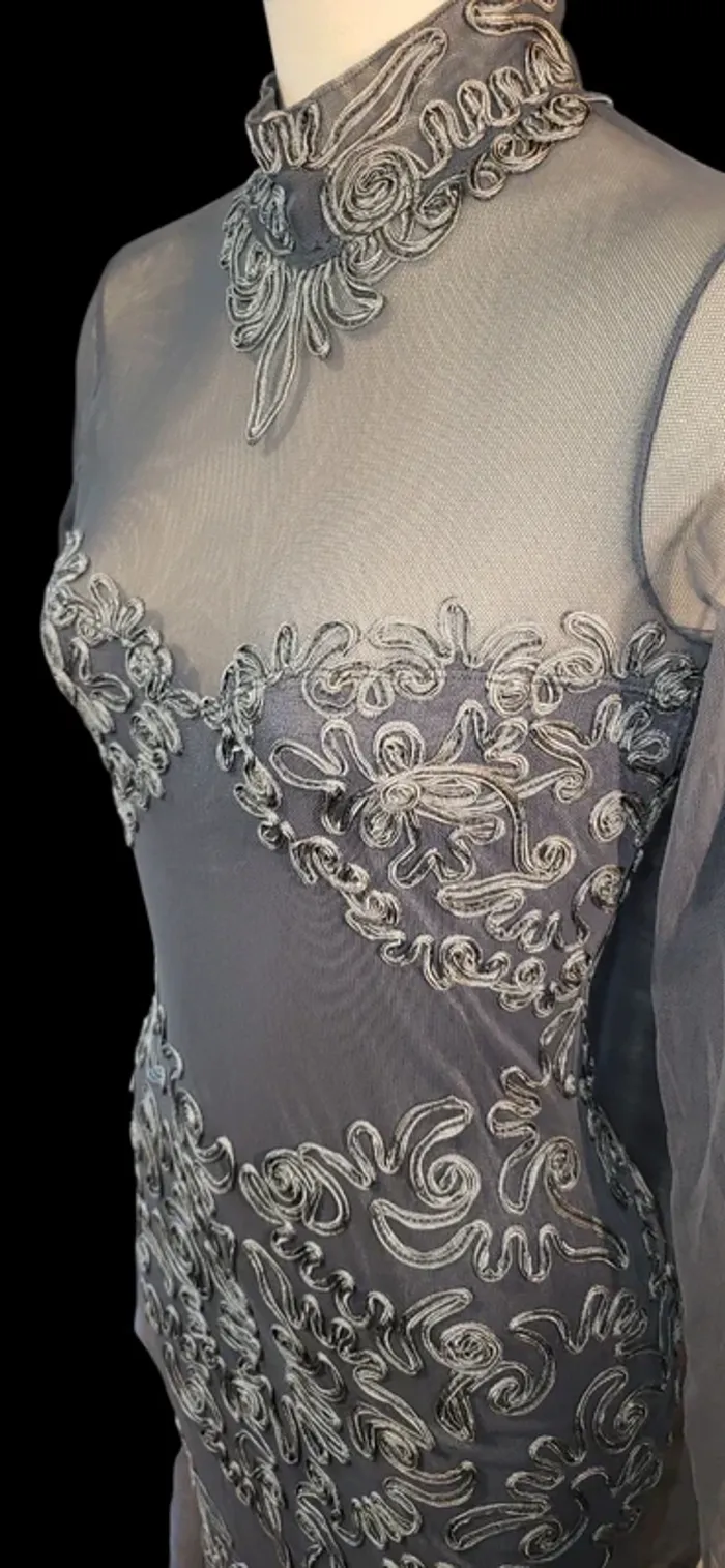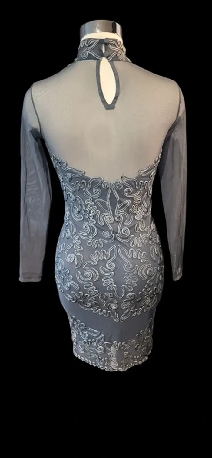Robe élégante brodée argentée – parfaite pour soirée ou cérémonie - photo numéro 2