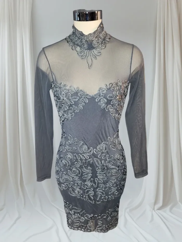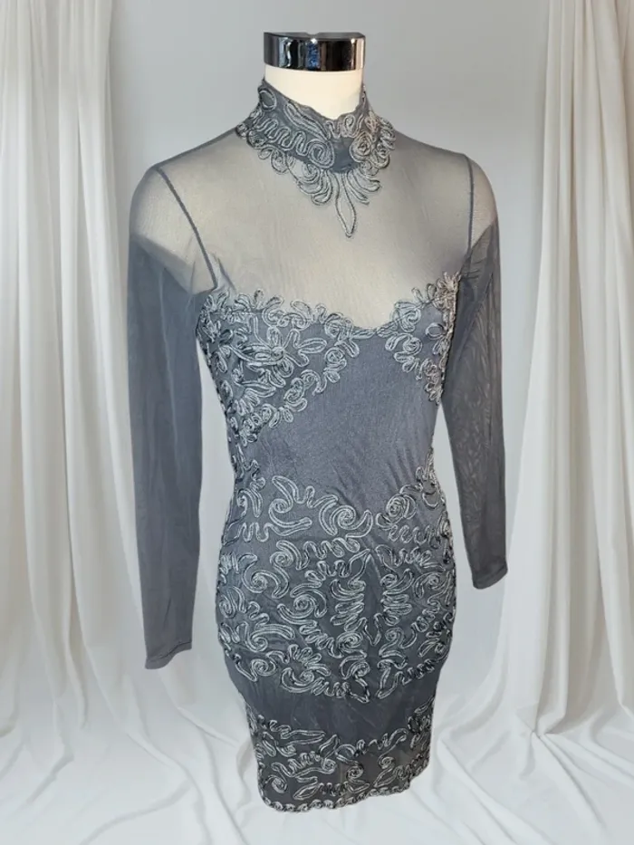 Robe élégante brodée argentée – parfaite pour soirée ou cérémonie - photo numéro 1