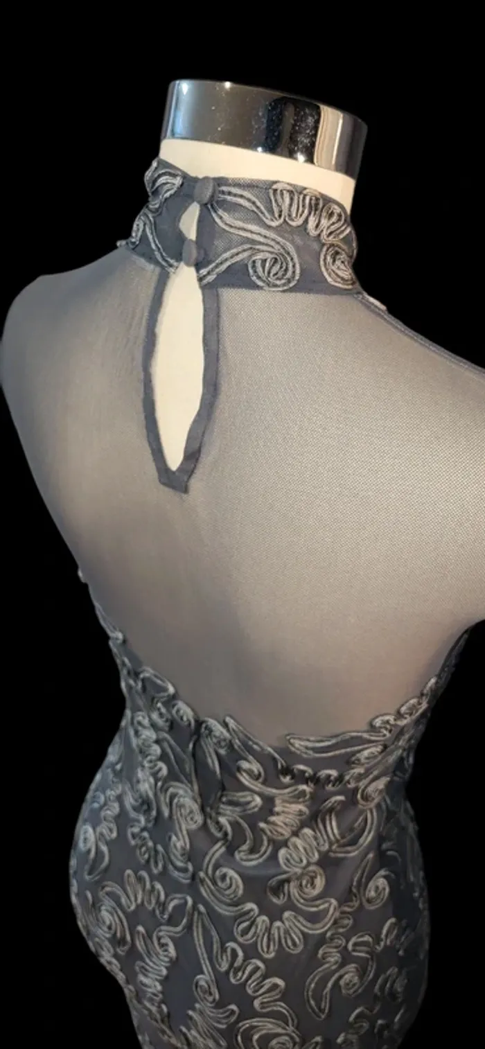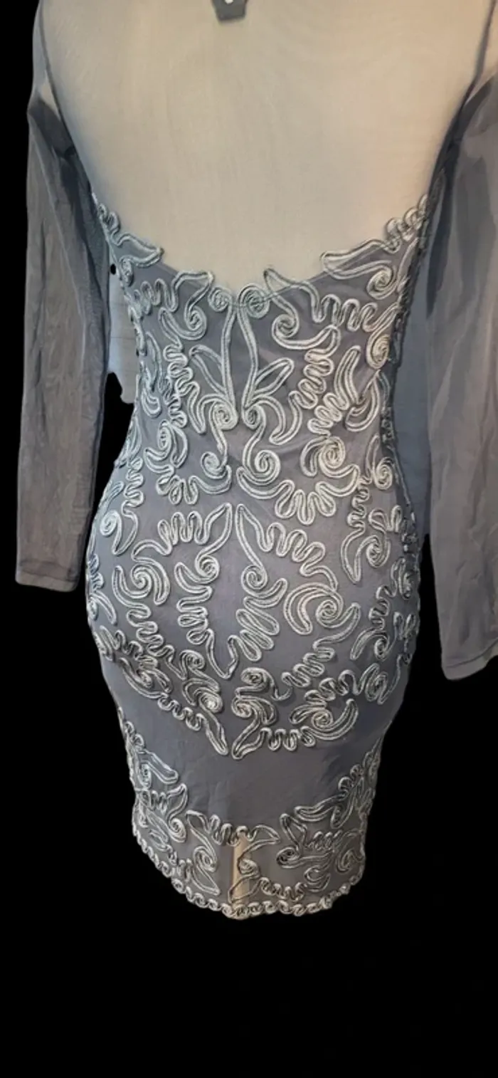 Robe élégante brodée argentée – parfaite pour soirée ou cérémonie - photo numéro 3