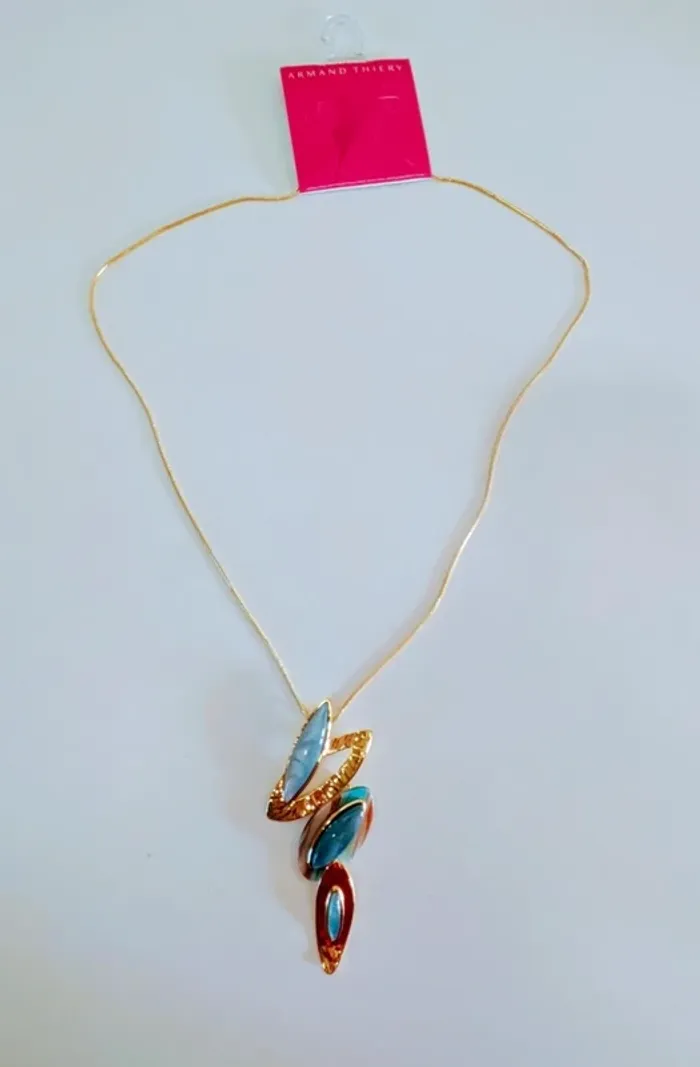 Collier à longueur ajustable avec chaîne de rallonge en maille forçat fine et embout perle goutte.