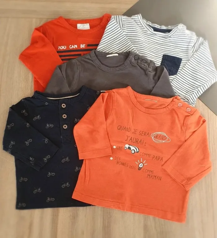 Très bon état général, petite trace de stylo sur le beau gosse (voir photo) 4 Kiabi, 1 Gémo #titegwen_garçon_3mois