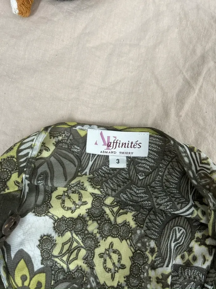 haut vert et marron vintage perlé à motifs fleuris taille L - photo numéro 3