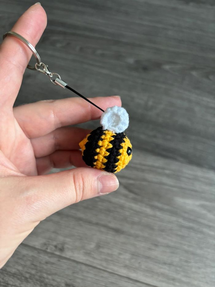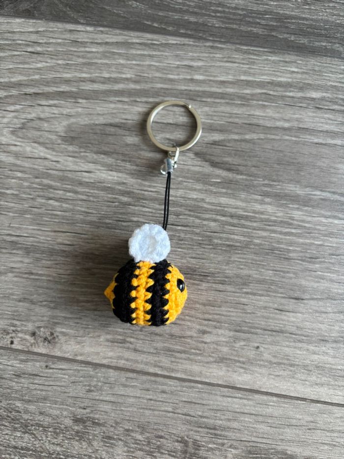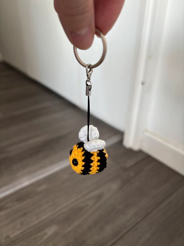 Breloque Abeille fait main au crochet par mes soins. Pour voir mes créations : #lenaknits #cadeauxmaitresse #portecle #porteclef #breloque #abeille #faitmain #handmade #creationfaitmain #faitmainenfrance #portecléabeille #breloqueabeille