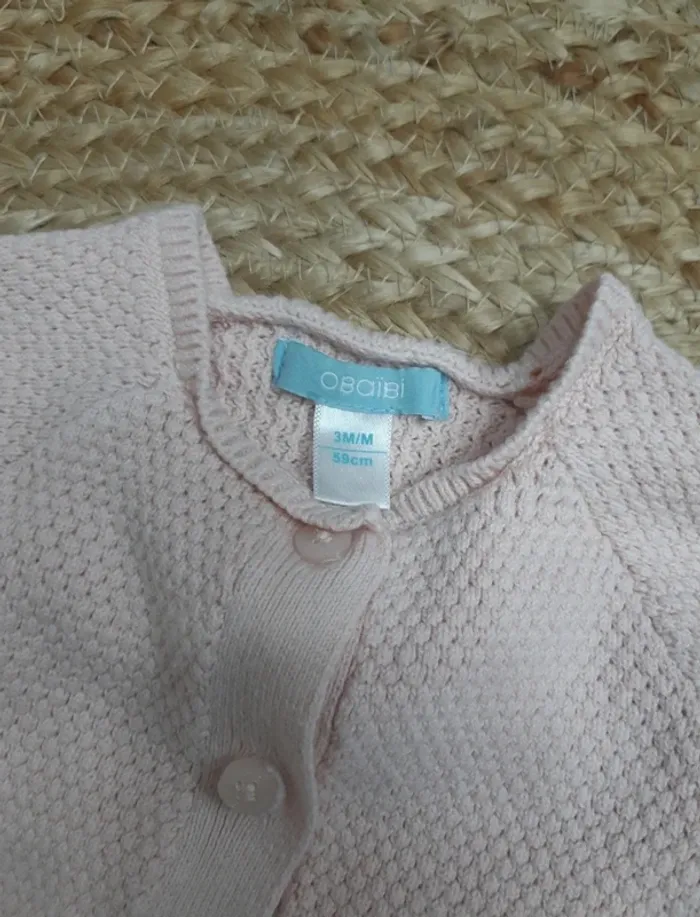 Gilet en maille rose Obaibi Pantalon hiver doublé côtelé, étoile pailletée, taille élastique et réglable Baby Club 62 cm #anthonyagnes_bebe3M