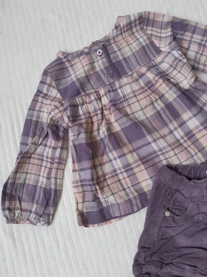 Blouse manches longues à motif carreaux, doublée Short hiver côtelé, taille réglable #anthonyagnes_bebe12M
