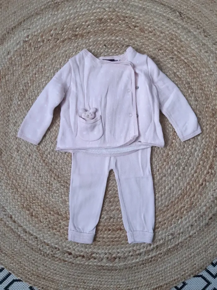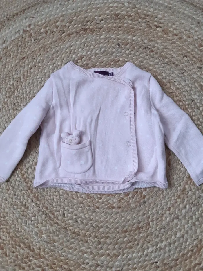 Pull rose, à rabat, poche avec petit animal Pantalon taché voir photo #anthonyagnes_bebe9M