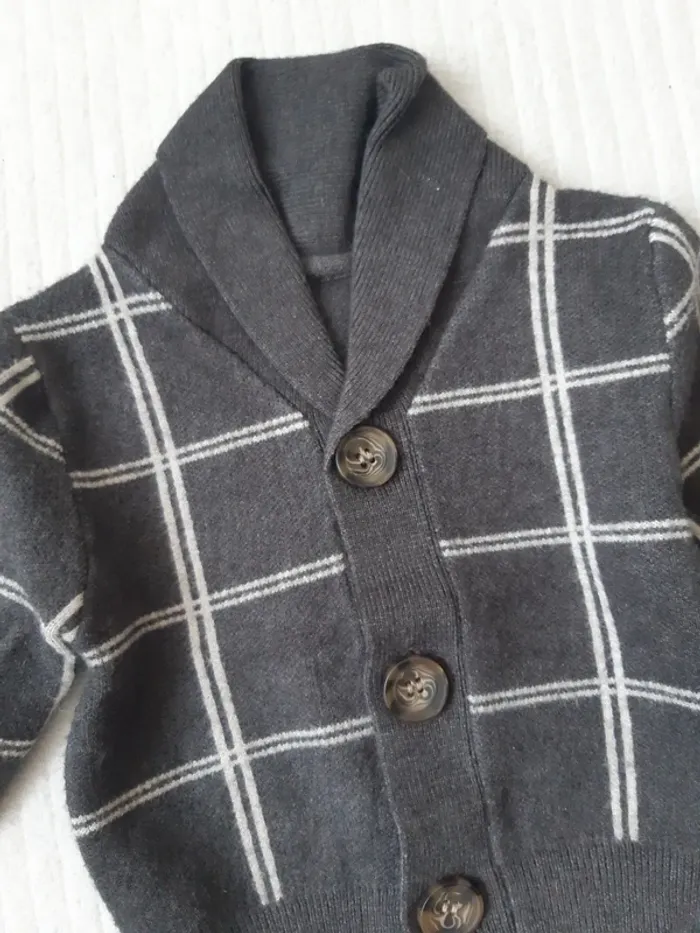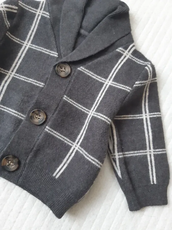 Gilet à motif carreaux Fermeture boutonnée Col à rabat Etiquette de matière coupée Convient pour un 3/6 mois #anthonyagnes_bebe3M #anthonyagnes_bebe6M