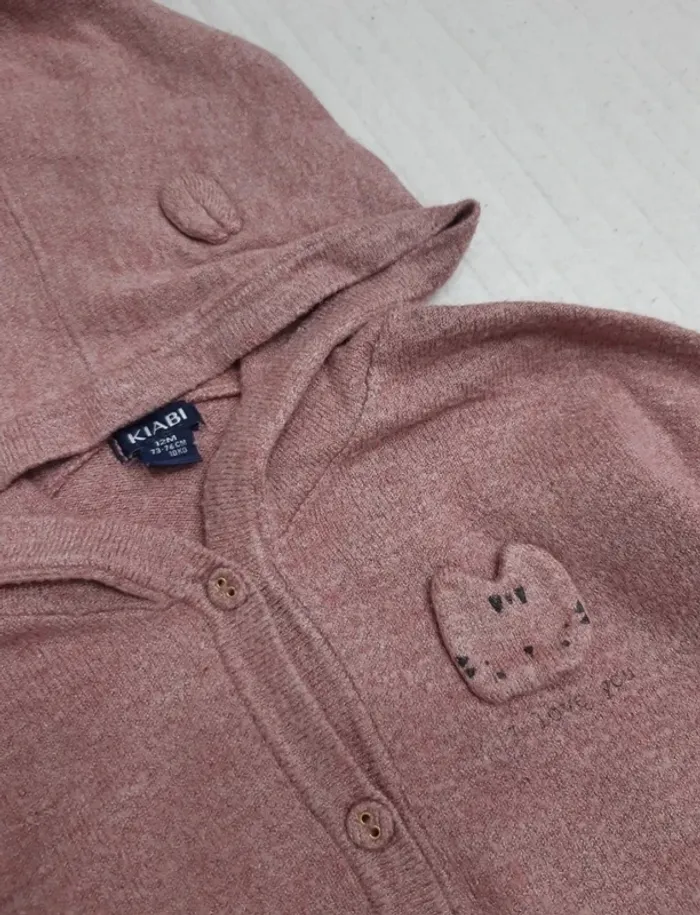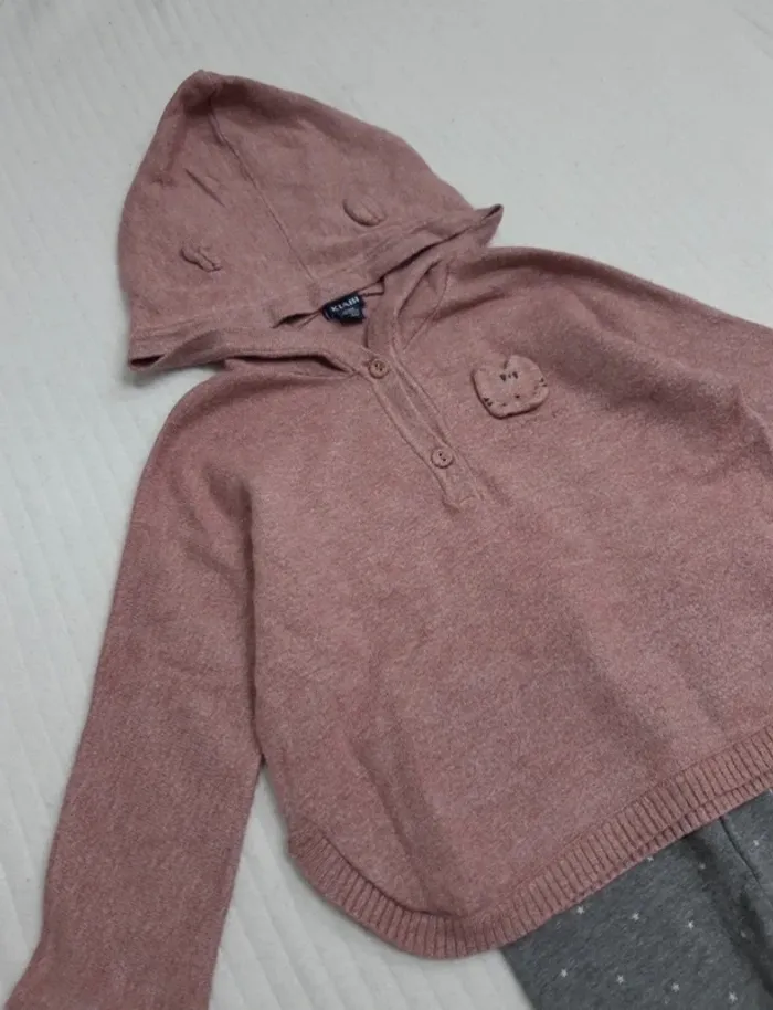 Pull fin à capuche avec oreille, petit chat, inscription "I love you", Kiabi Legging gris étoilé, Obaibi #anthonyagnes_bebe12M