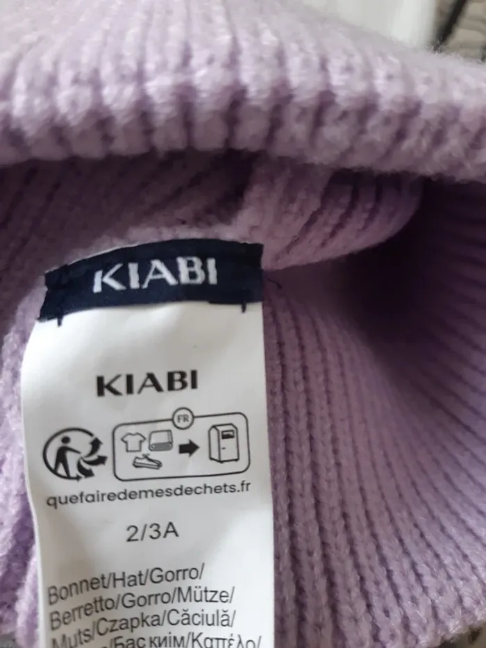 Bonnet côtelé lilas Kiabi 2/3 ans