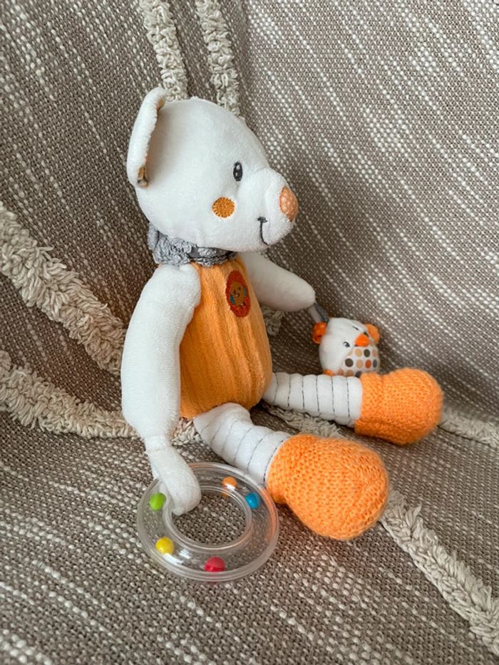 Peluche doudou d’éveil 28cm Nicotoy ours orange et blanc très bon état