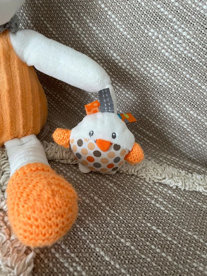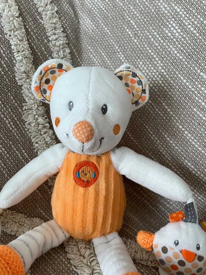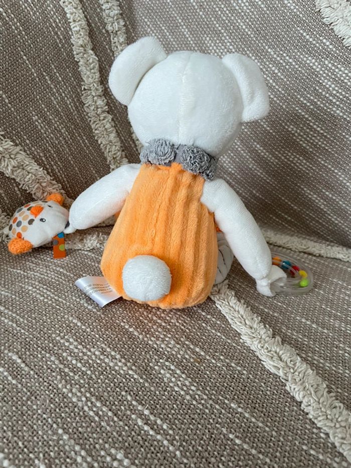 Peluche doudou d’éveil 28cm Nicotoy ours orange et blanc très bon état - photo numéro 5
