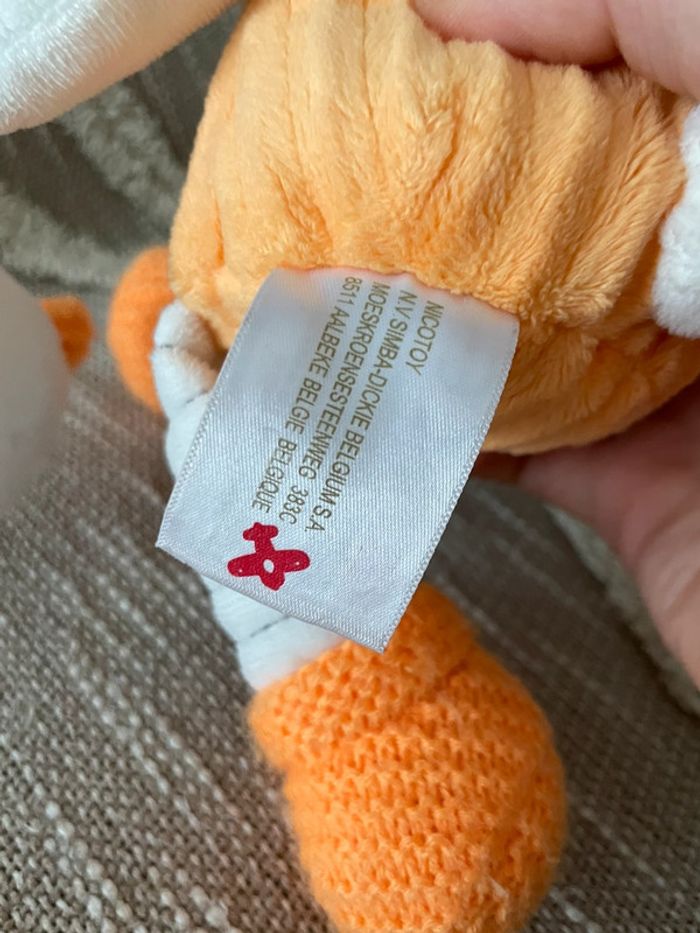 Peluche doudou d’éveil 28cm Nicotoy ours orange et blanc très bon état - photo numéro 6