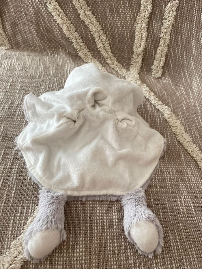 Peluche doudou plat 27cm Tom et Zoé ours rond gris et blanc poils long parfait état - photo numéro 3