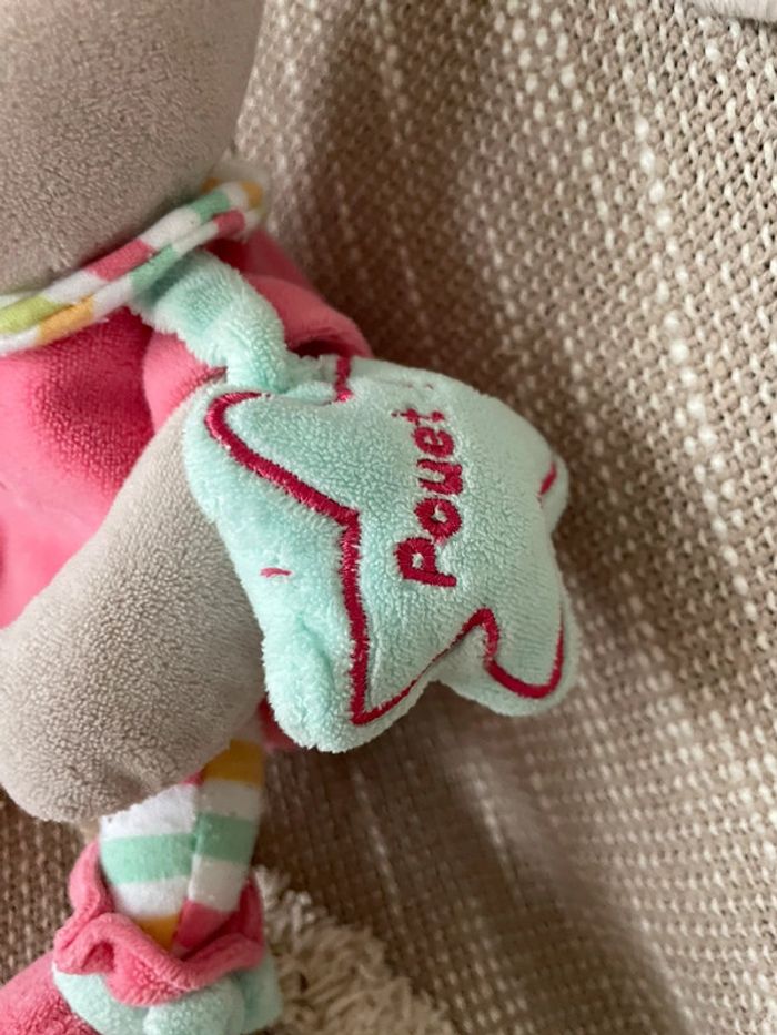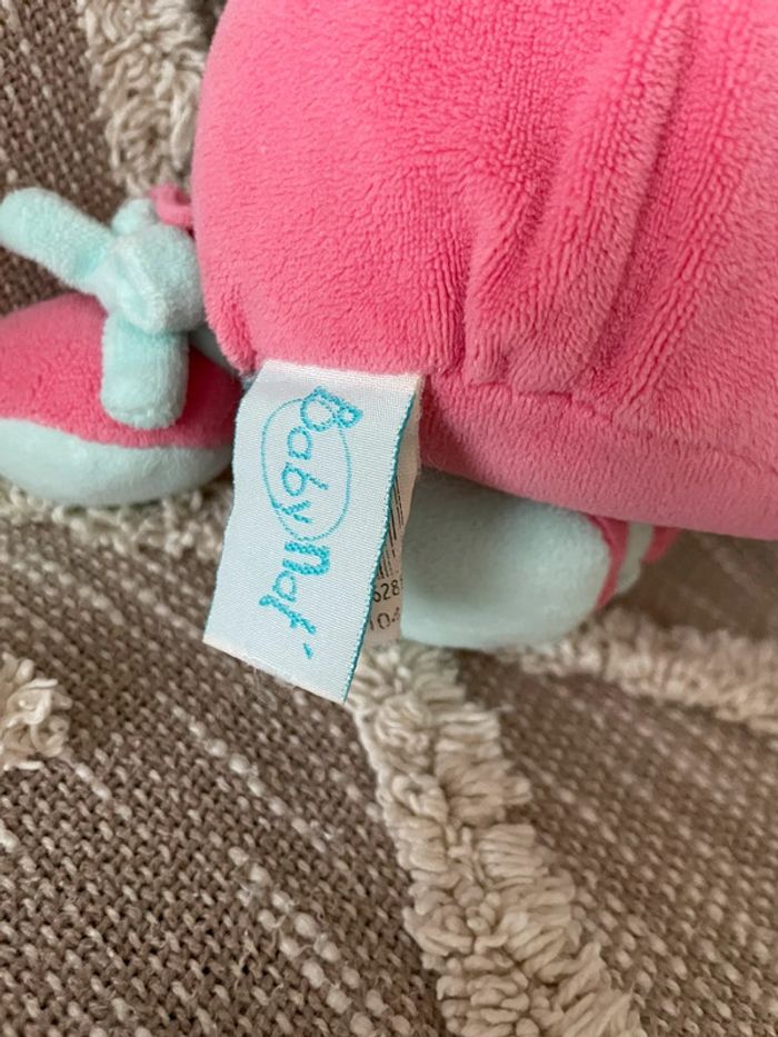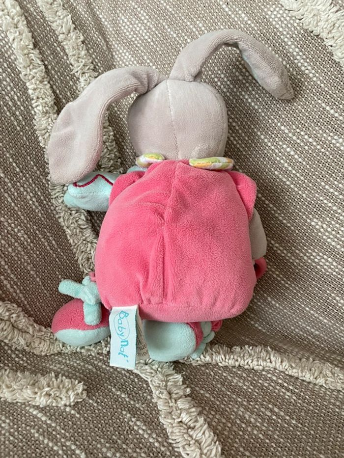 Peluche doudou d‘éveil 25cm Babynat lapin gris rose et bleu très bon état - photo numéro 6