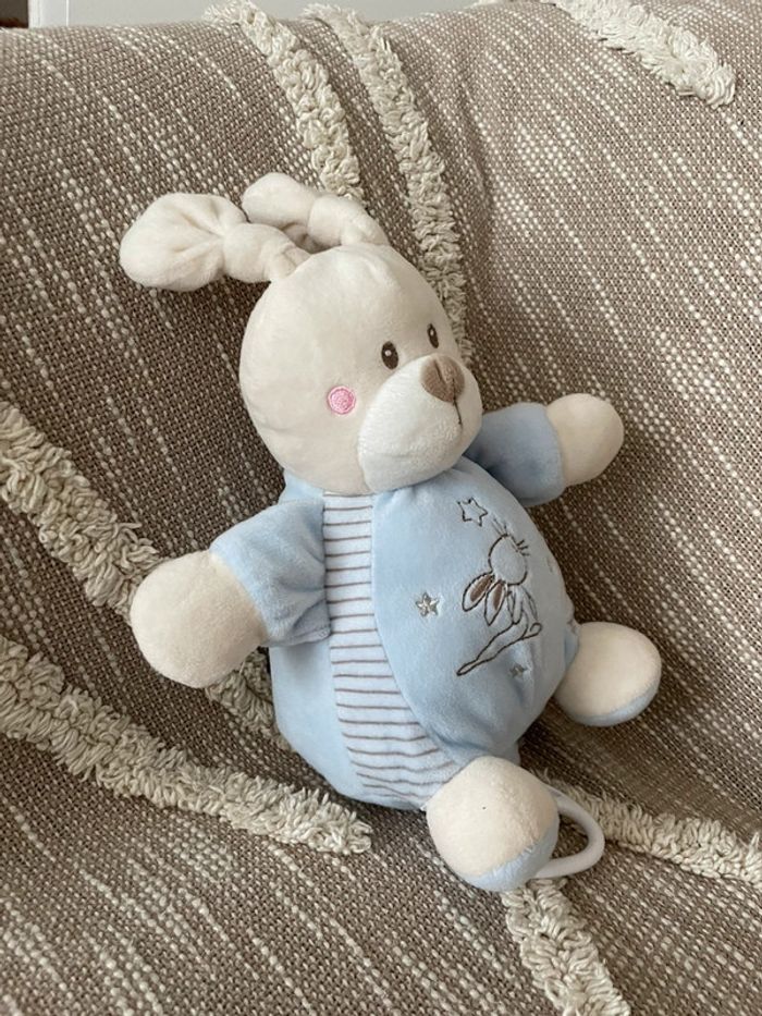 Peluche doudou musical 23cm Simba toys lapin beige et bleu parfait état - photo numéro 1