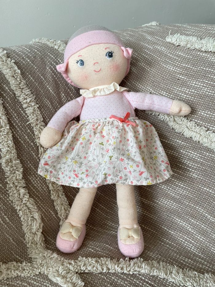 Peluche doudou 38cm Corolle poupée fille rose beige et gris a fleur très bon état - photo numéro 1
