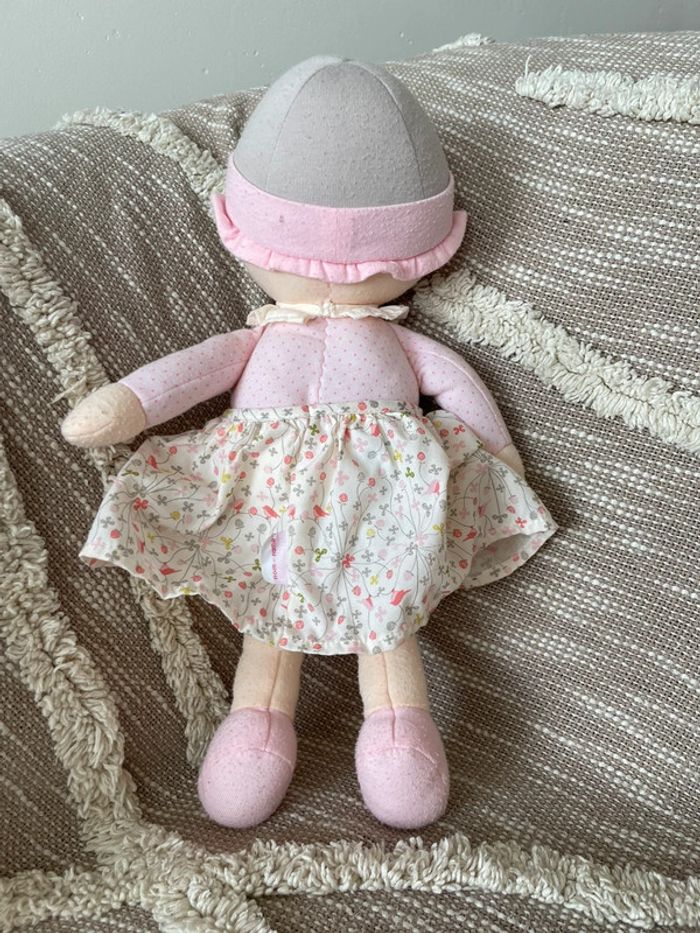 Peluche doudou 38cm Corolle poupée fille rose beige et gris a fleur très bon état - photo numéro 5