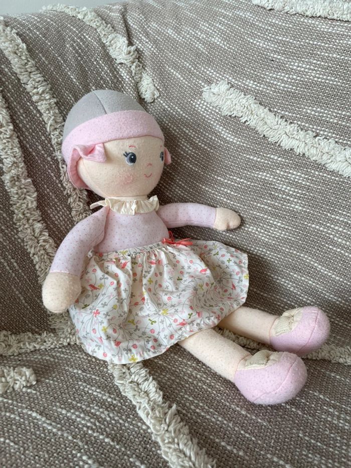 Peluche doudou 38cm Corolle poupée fille rose beige et gris a fleur très bon état