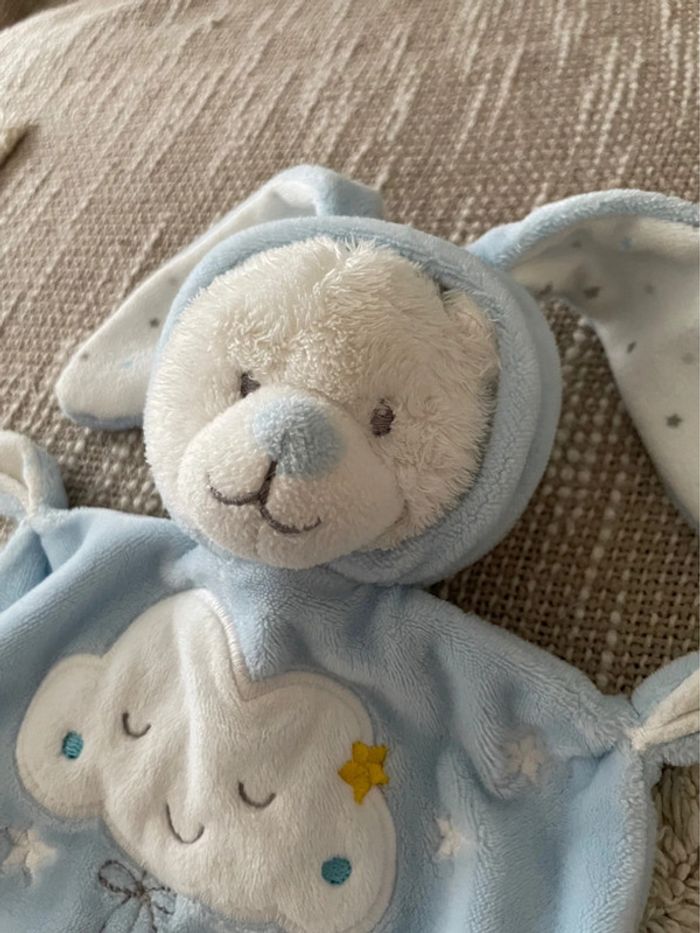 Peluche doudou plat max and sax ours bleu et blanc très bon état - photo numéro 5
