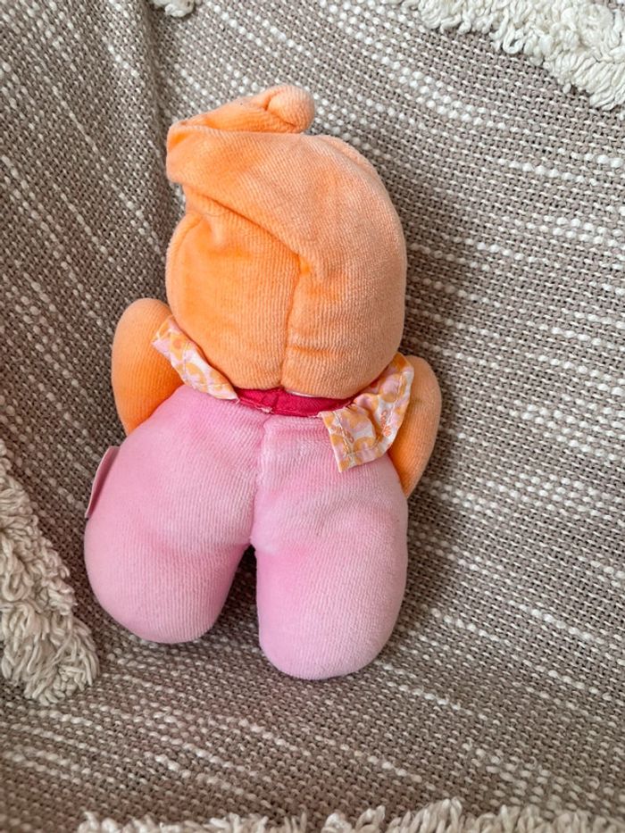 Peluche doudou 17cm corolle poupée de chiffon fille rose et orange très bon état - photo numéro 4