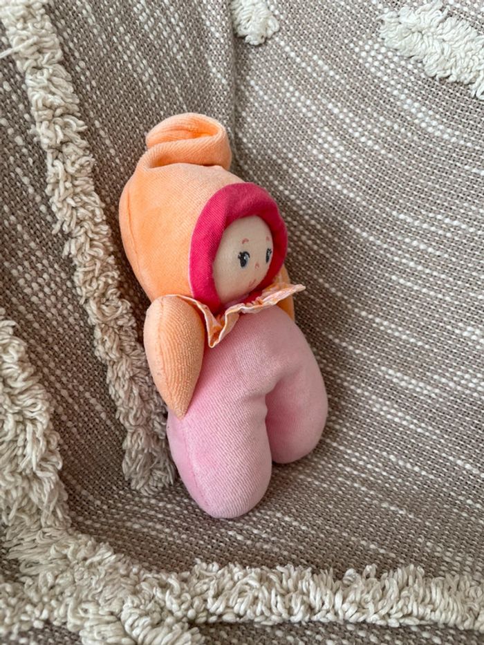 Peluche doudou 17cm corolle poupée de chiffon fille rose et orange très bon état - photo numéro 3