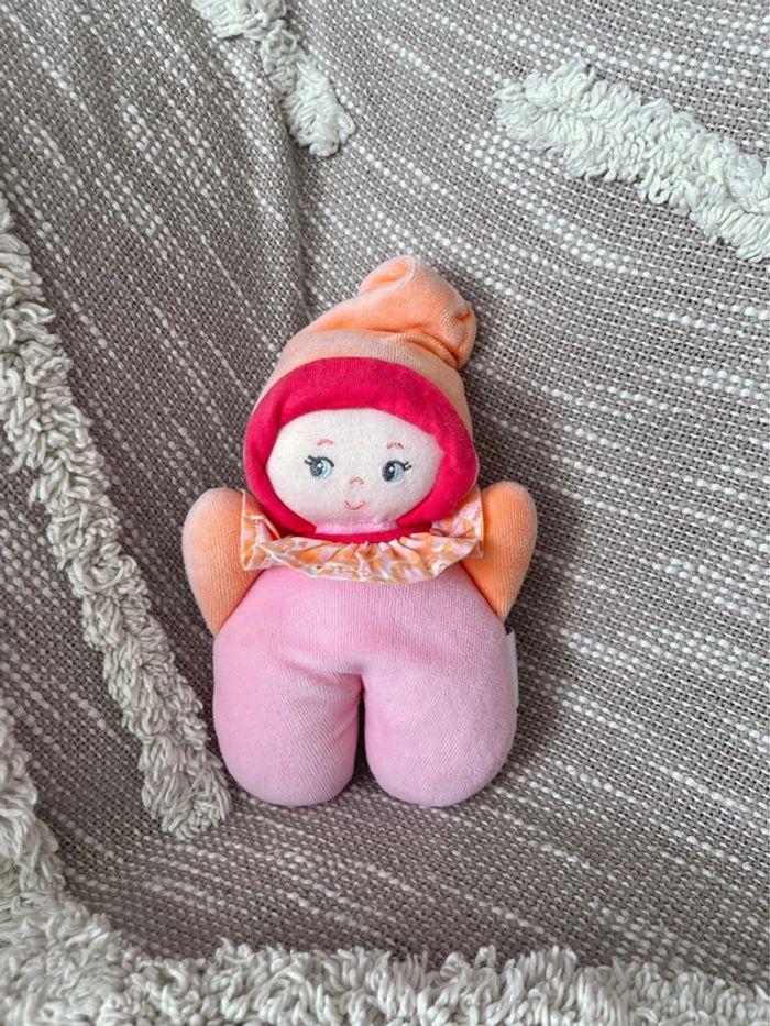 Peluche doudou 17cm corolle poupée de chiffon fille rose et orange très bon état - photo numéro 2