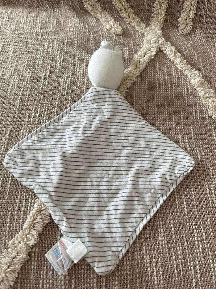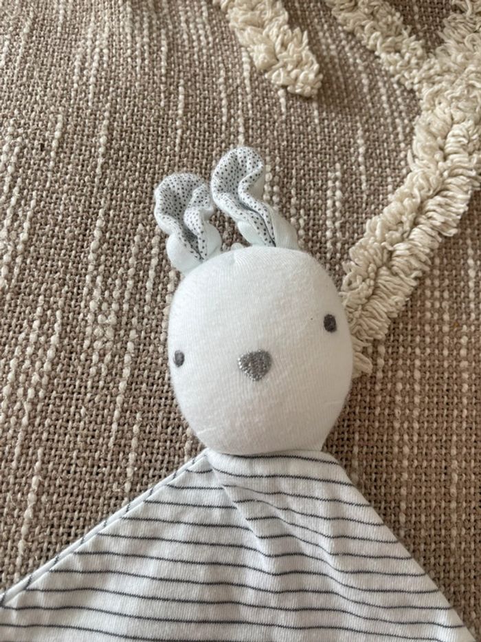 Peluche doudou plat 30cm obaibi lapin blanc gris rayé parfait état
