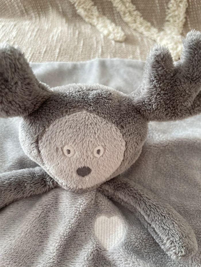 Peluche doudou plat 26cm Obaïbi cerf renne gris cœur parfait état