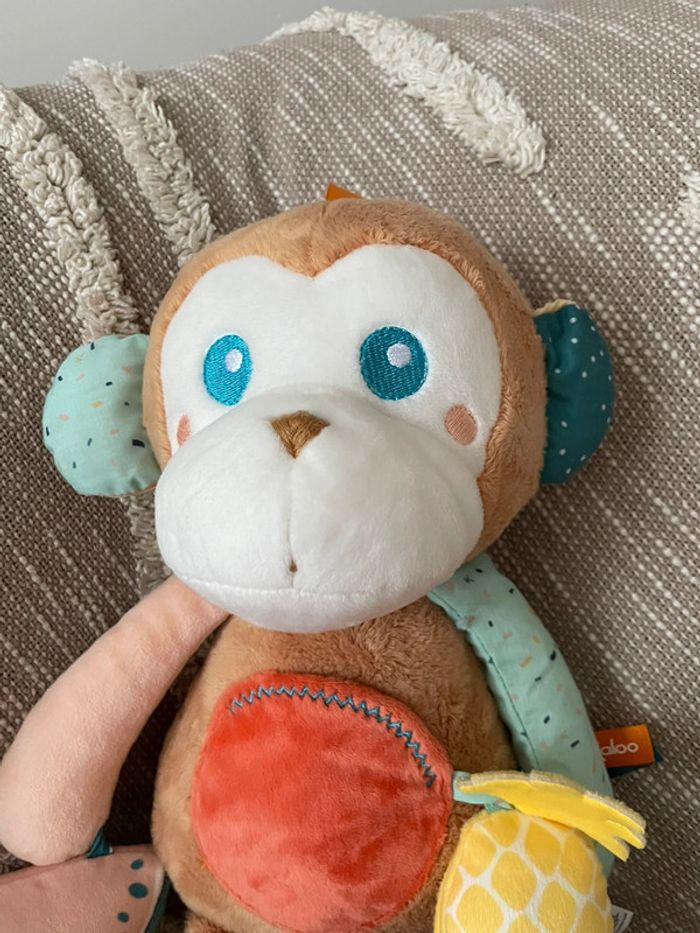 Peluche doudou d’éveil 35cm Kaloo singe beige et bleu parfait état - photo numéro 5