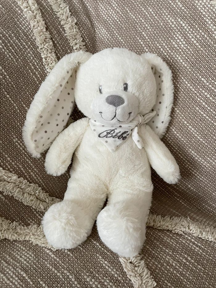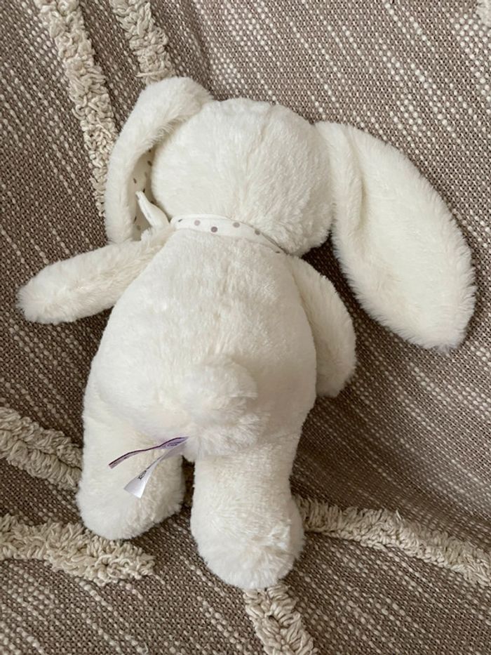 Peluche doudou 27cm pommette lapin d’éveil blanc à pois très bon état - photo numéro 4