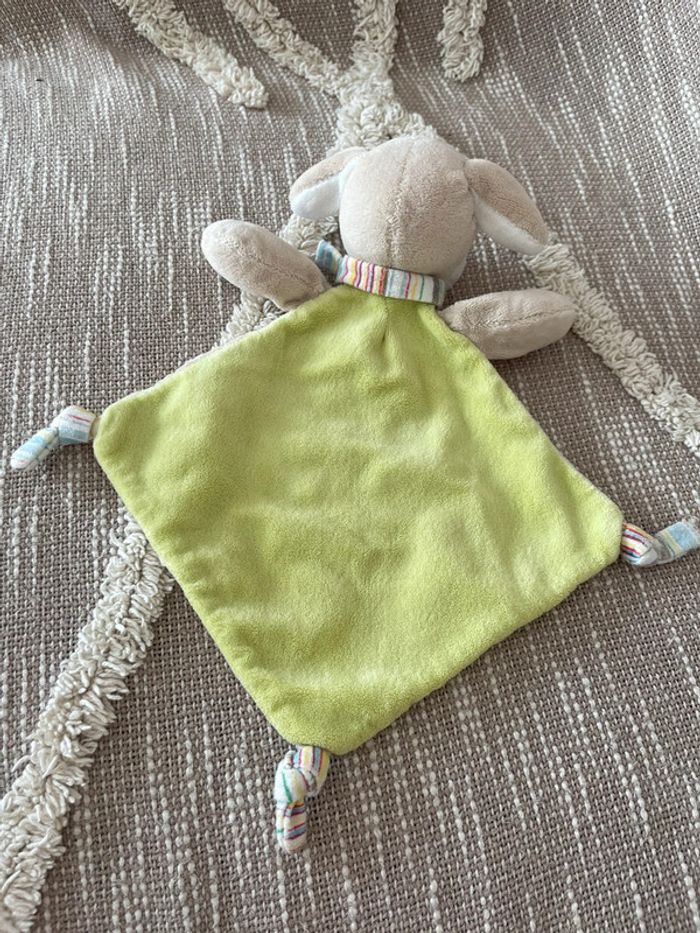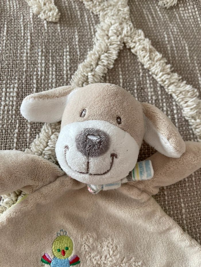Peluche doudou plat Nicotoy chien beige et vert très bon état - photo numéro 3