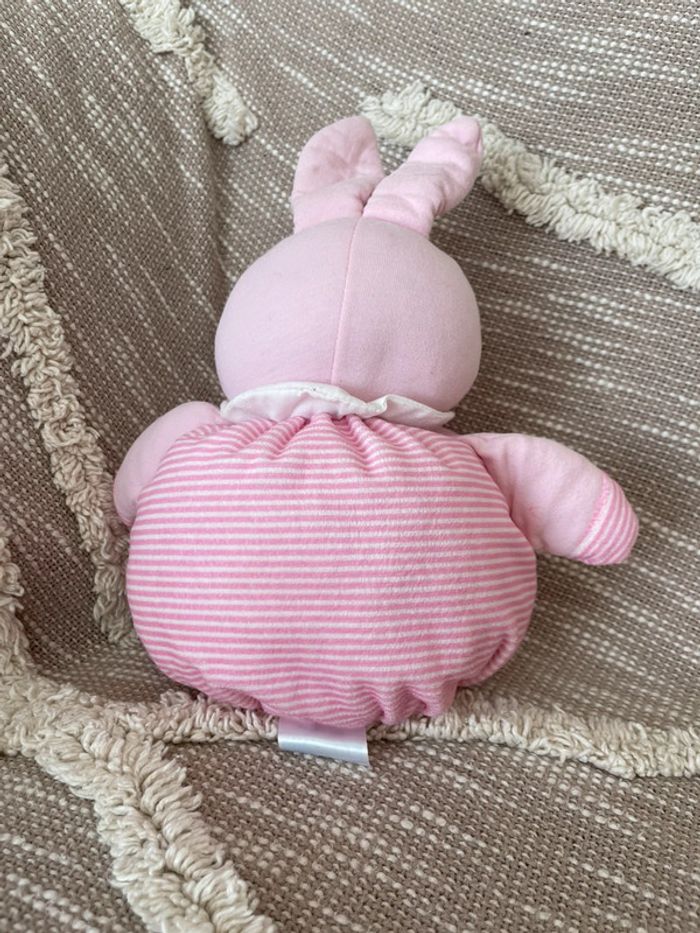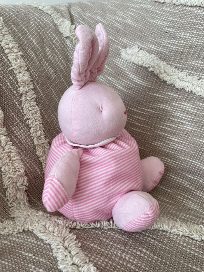 Peluche doudou boule 19cm klorane lapin rose rayé et blanc tres bon état