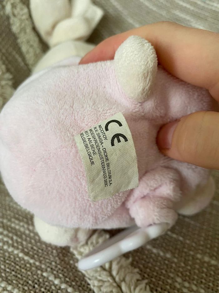 Peluche doudou musical 22cm Nicotoy lapin rose et beige rayé ABC très bon état - photo numéro 4