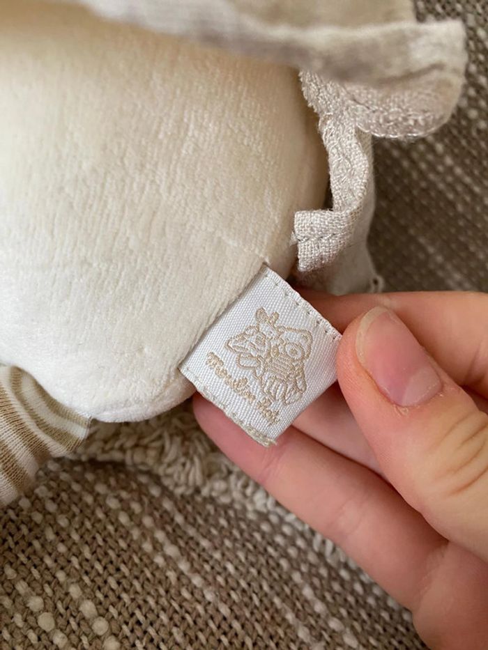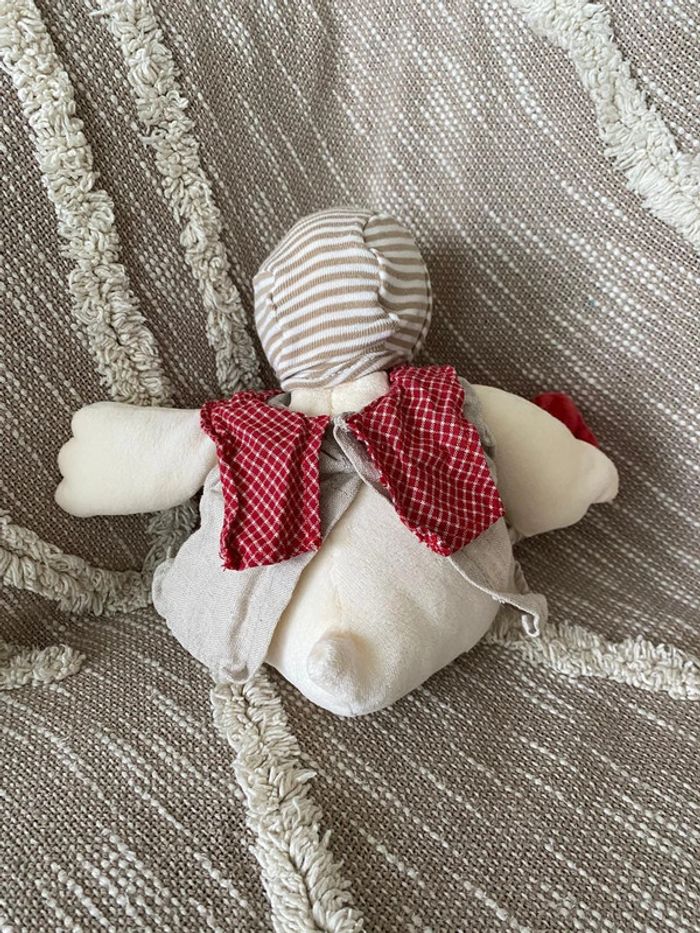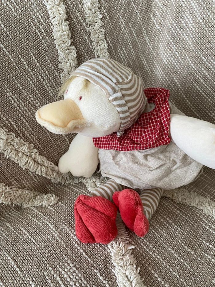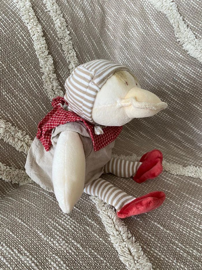 Peluche doudou 37cm moulin roty canard blanc beige et rouge rayé très bon état - photo numéro 5