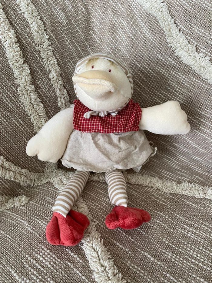 Peluche doudou 37cm moulin roty canard blanc beige et rouge rayé très bon état - photo numéro 1