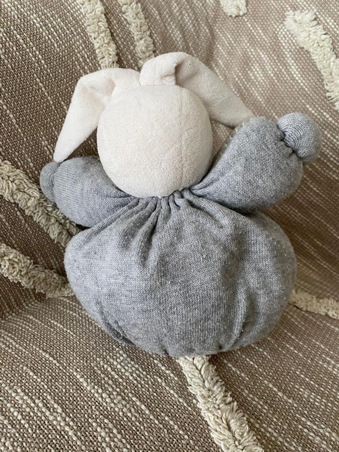 Peluche doudou boule 23cm Kaloo lapin blanc gris et vert très bon état - photo numéro 4