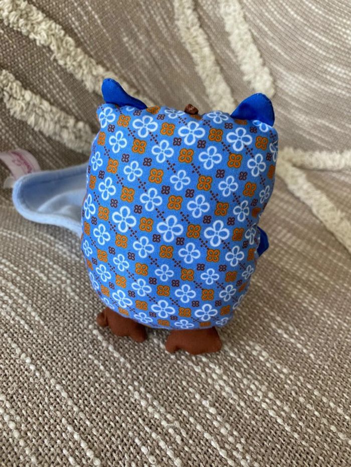 Peluche doudou mouchoir 13cm pommette hiboux chouette bleu à fleur très bon état - photo numéro 5